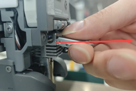 The hotend can only be replaced when the toolhead is not loaded with filament. If filament is loaded, please unload it first, or manually press the cutter arm to cut the filament.