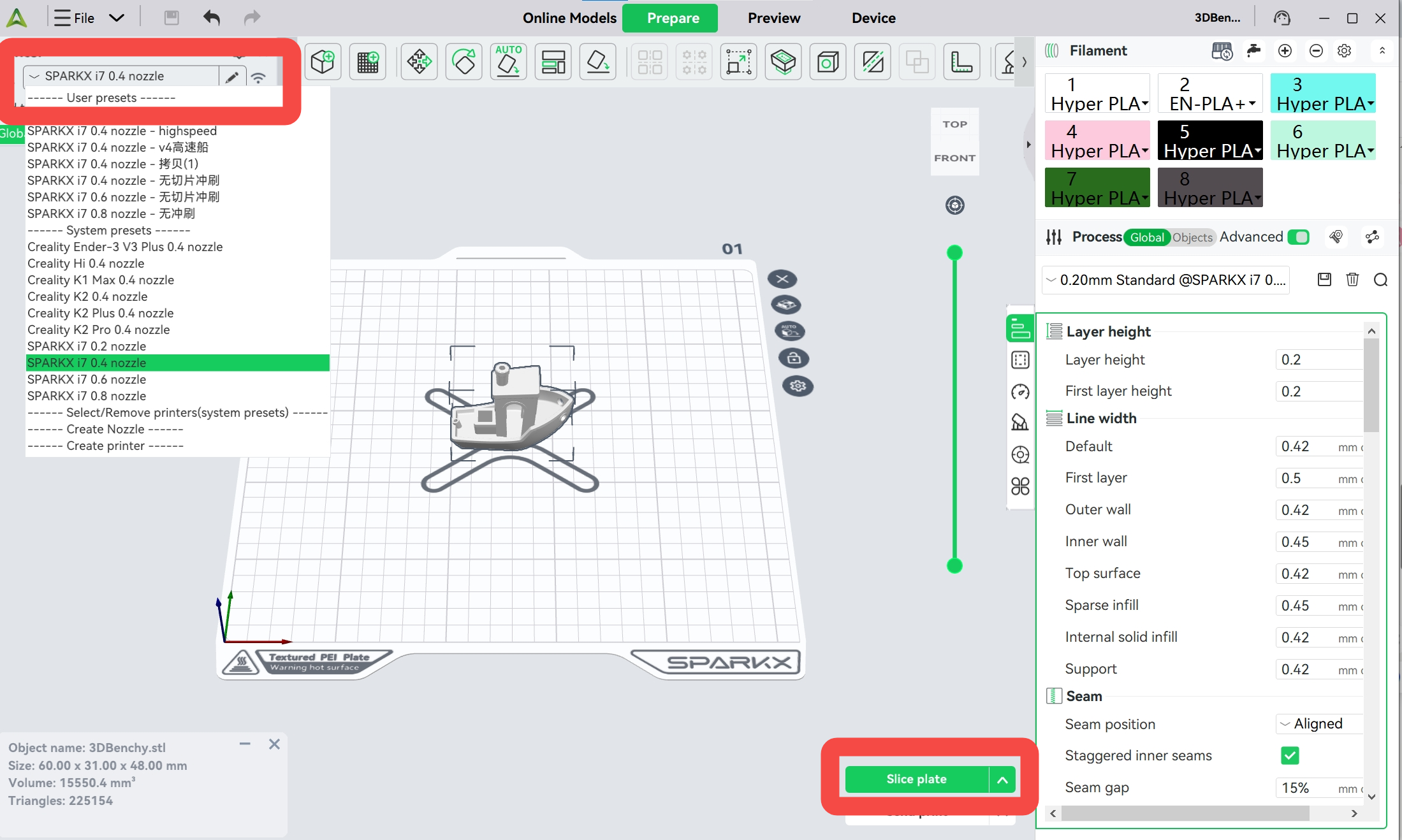 Open the model file you created or downloaded from an online model repository using Creality Print slicing software.