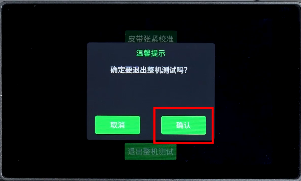 9. L轴校准结束后在弹出的对话框点击【退出整机测试】,再点击【确认】