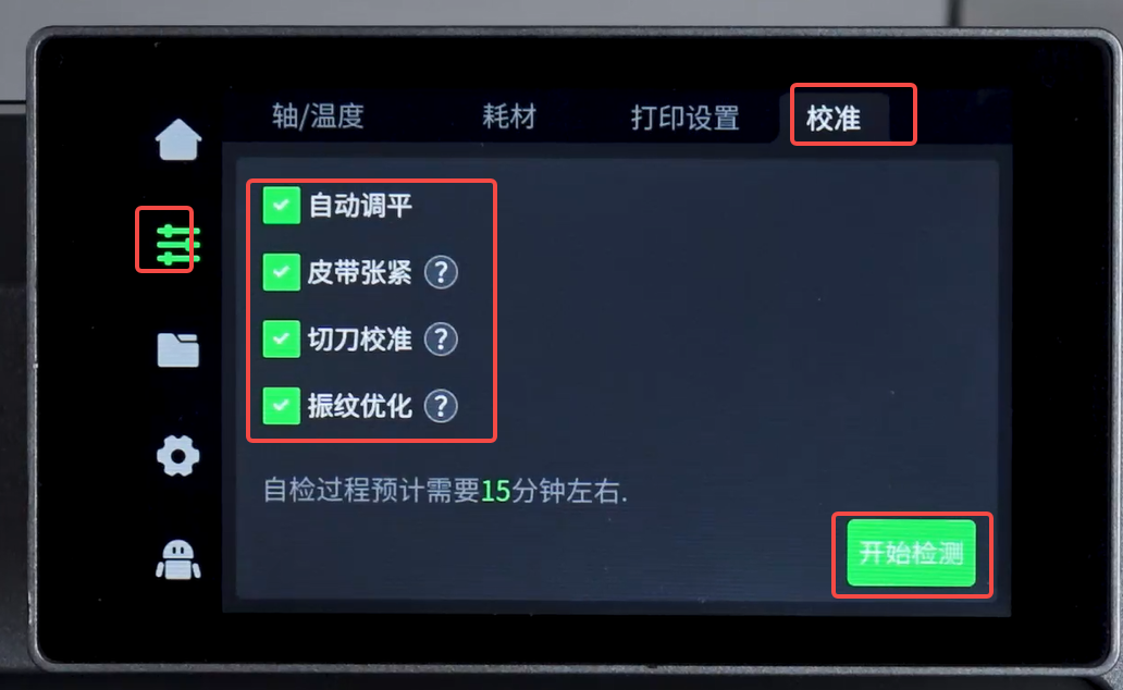 10. 最后进行一次手动自检确认校准结果。
