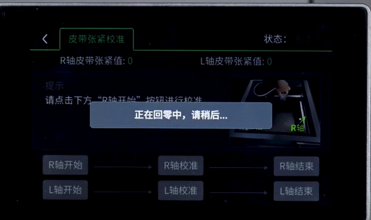 4. 进去后会自动回零。回零完成后点击【R轴开始】