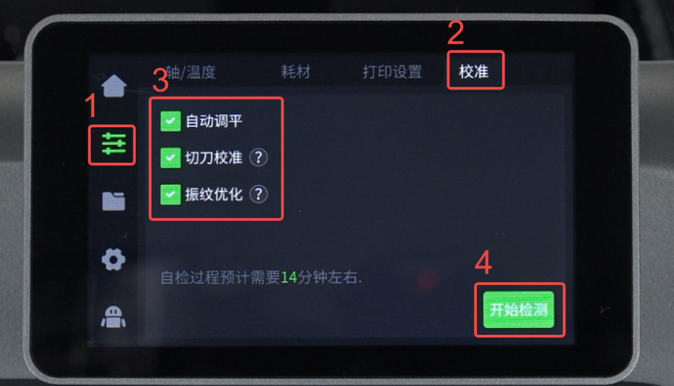 点击“准备”-“校准”-“全选”-“开始”,等待设备校准完成即可